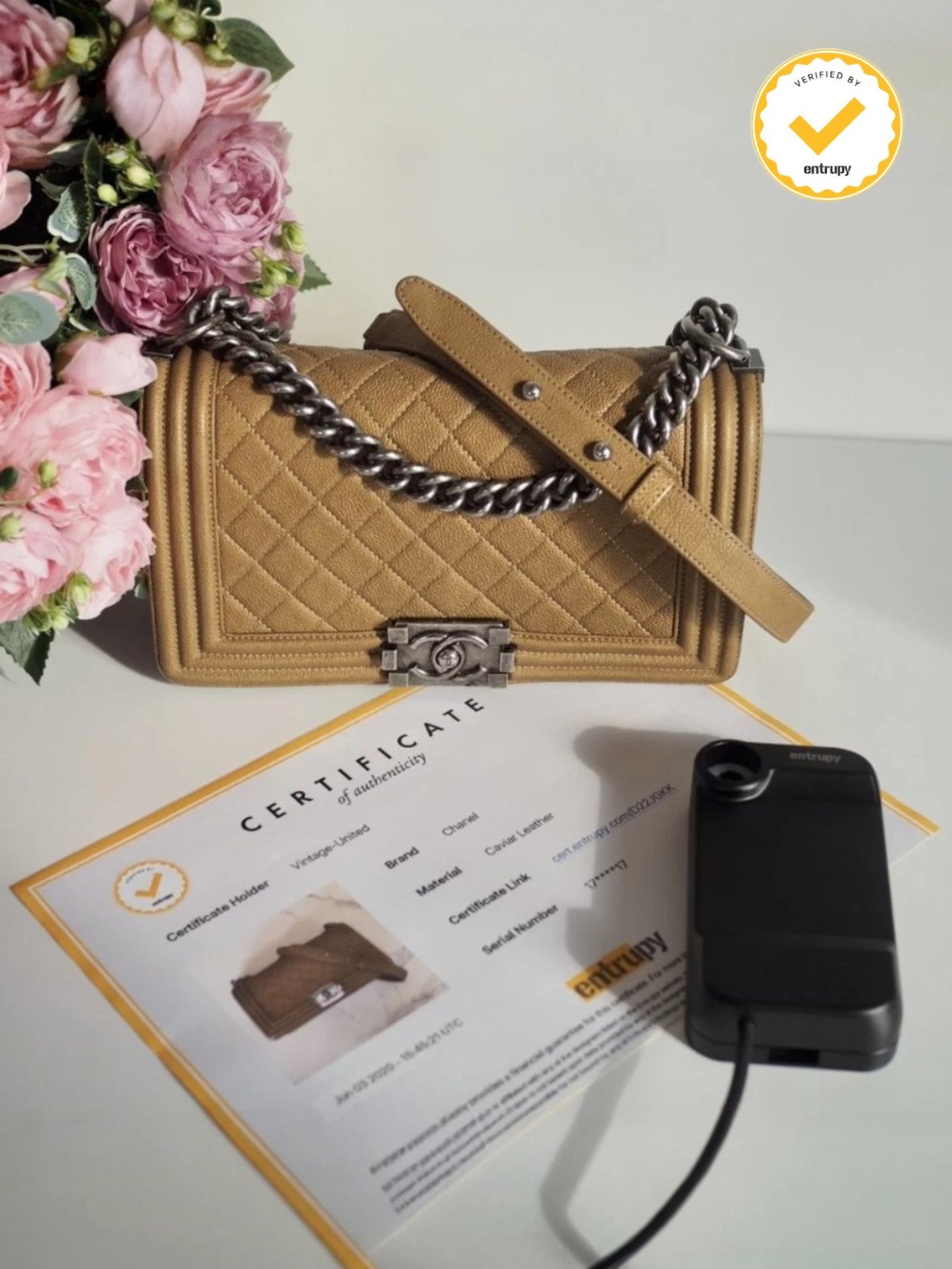 All products sold on our platform are verified by our experts and we guarantee their authenticity. If you want an additional Entrupy certificate for your dream bag - add it to your cart before making a purchase.