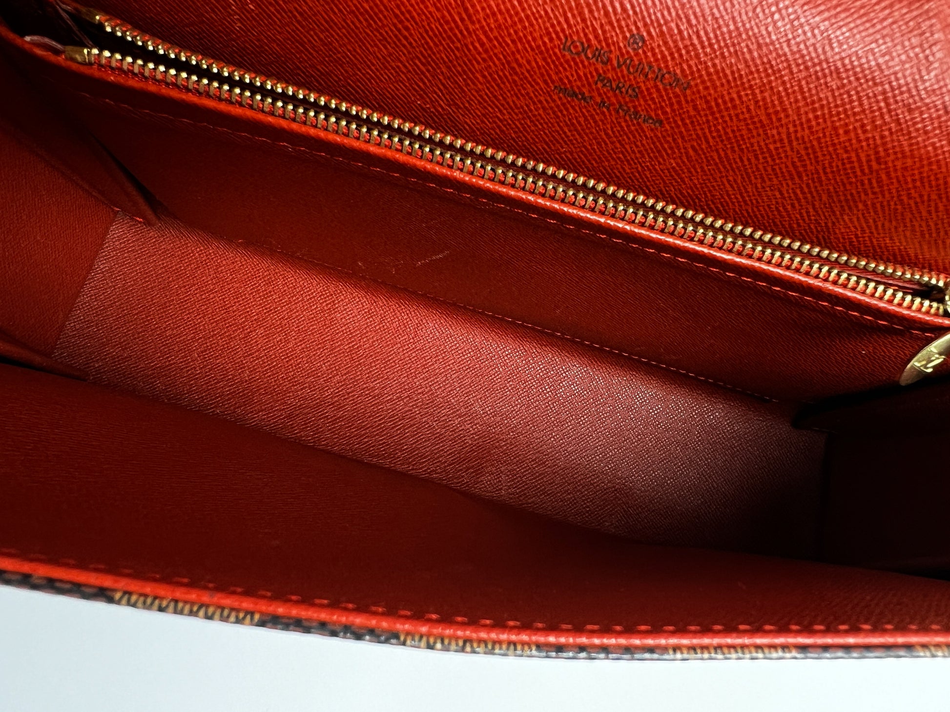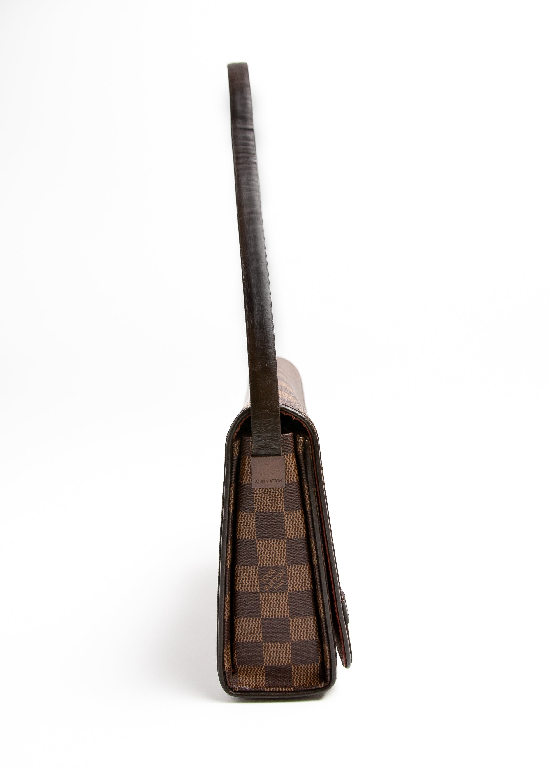 Elegancka, ponadczasowa torebka Louis Vuitton o prostym, minimalistycznym fasonie, wykonana z charakterystycznego płótna w kultowy motyw Damier Ebene.