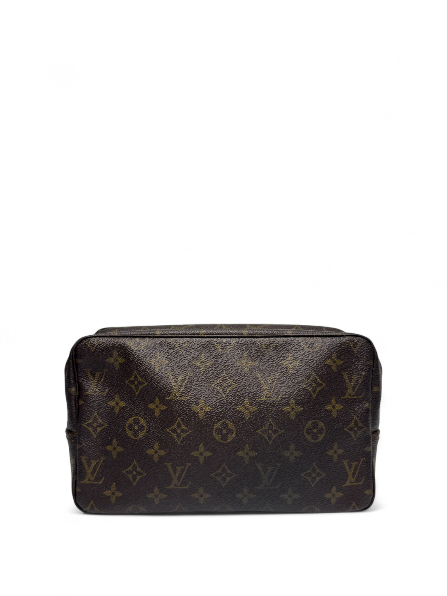 Klasyczna kosmetyczka Louis Vuitton Trousse Toilette 28 w ikonicznym monogramie, wykonana z trwałego płótna Monogram Canvas z naturalną skórzaną wyściółką.