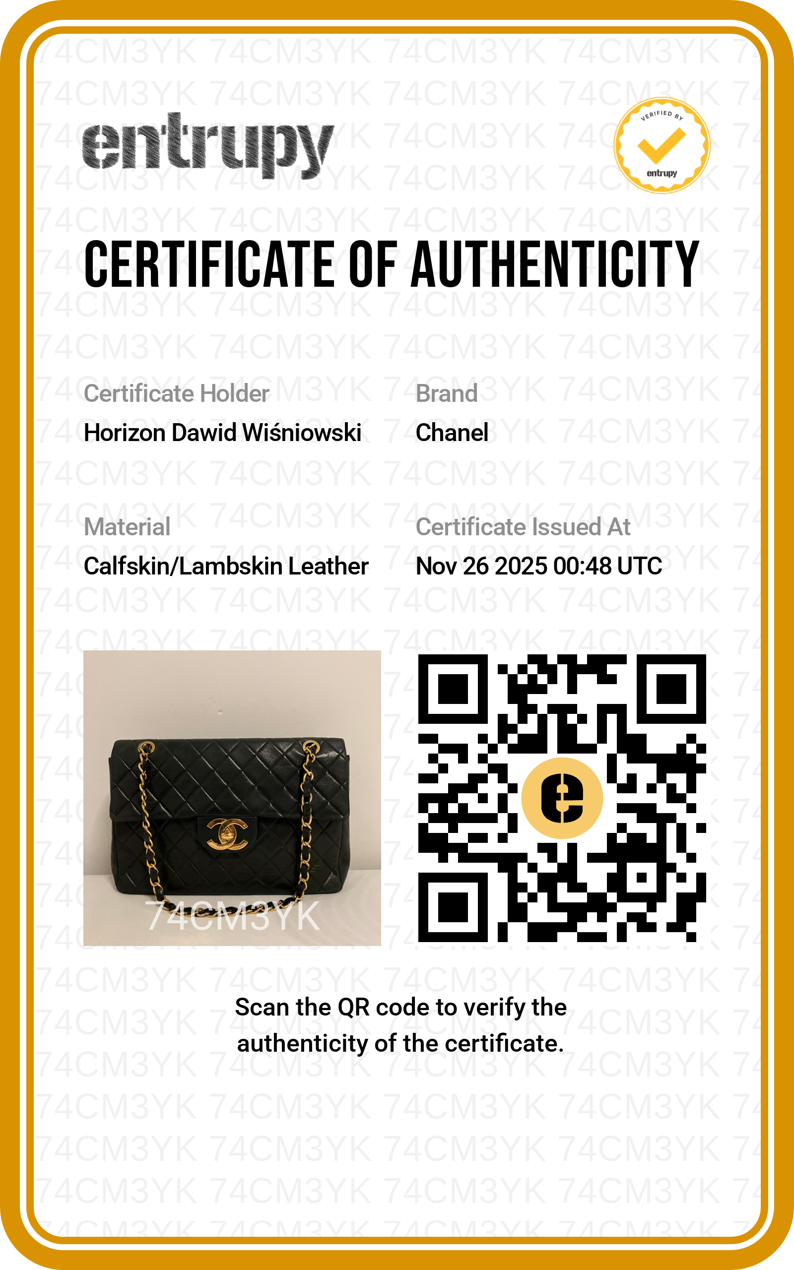 Wszystkie produkty sprzedawane na naszej platformie są weryfikowane przez naszych ekspertów i gwarantujemy ich autentyczność. Więcej informacji na ten temat znajdziesz w zakładce Autentyczność. Jeżeli chcesz dodatkowo certyfikat Entrupy do wybranej torebki - dodaj go do koszyka przed dokonaniem zakupu.