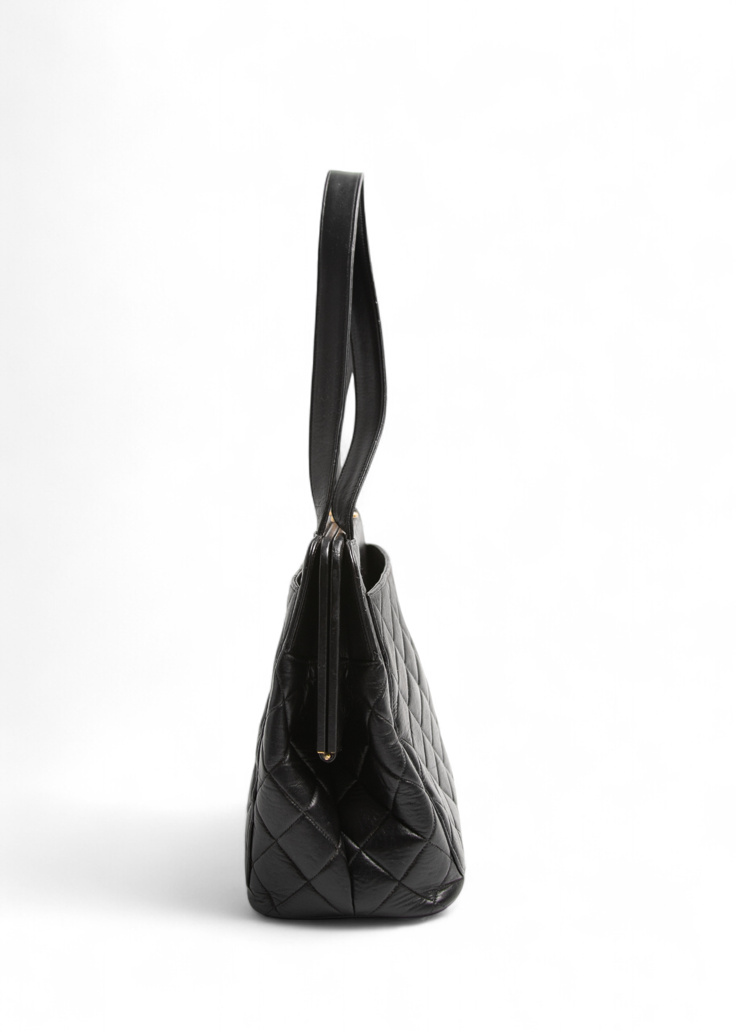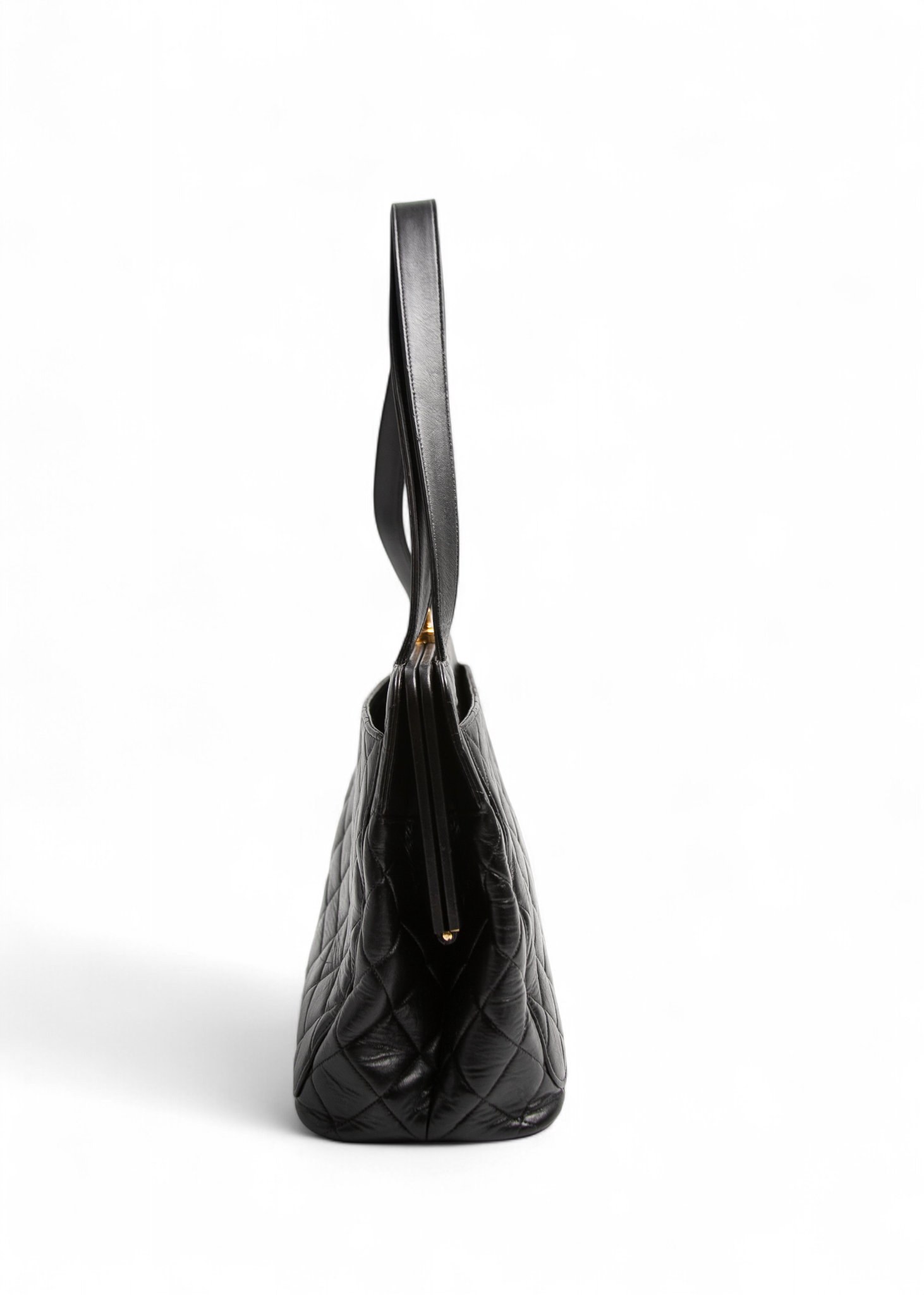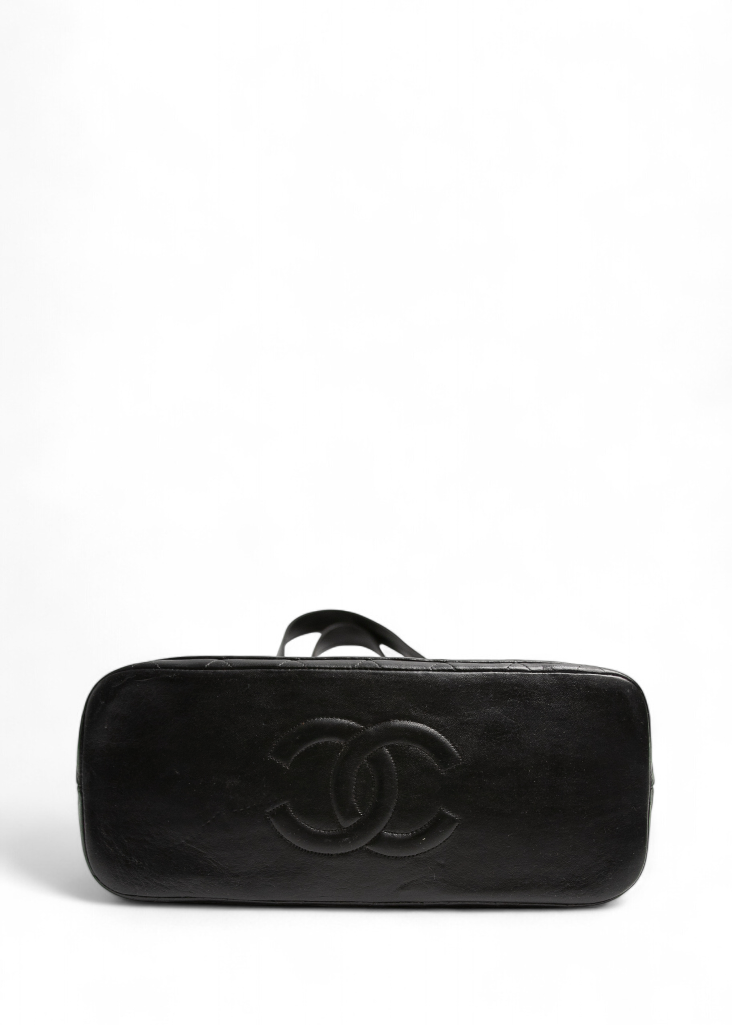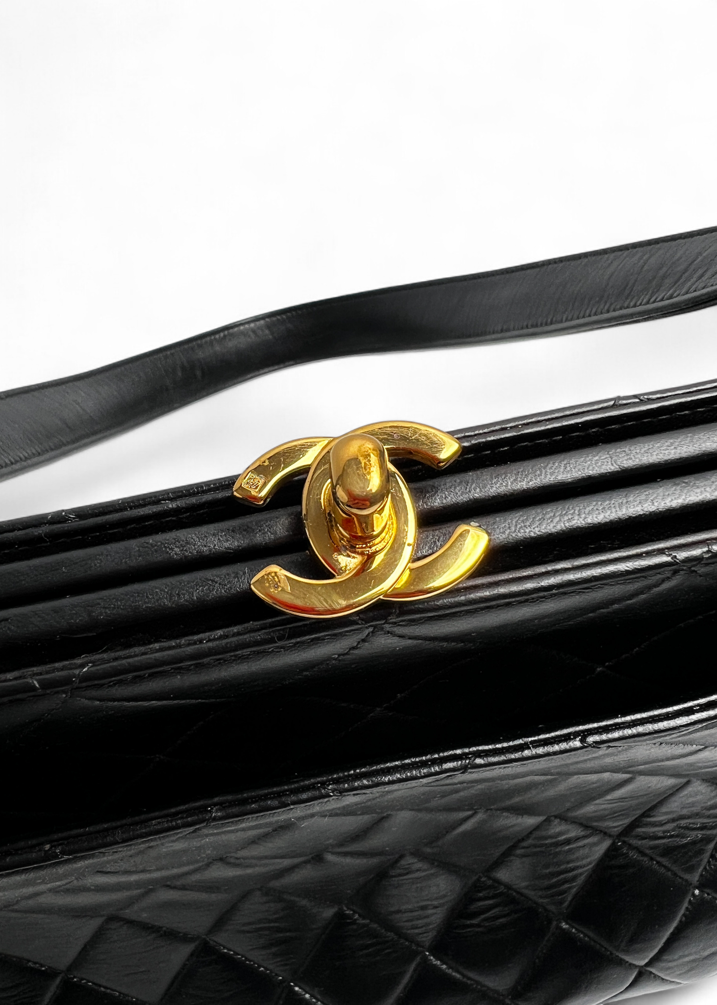 Chanel Top CC Vintage – model z podwójnymi skórzanymi rączkami i obrotowym zapięciem CC pozłacanym 24k złotem.