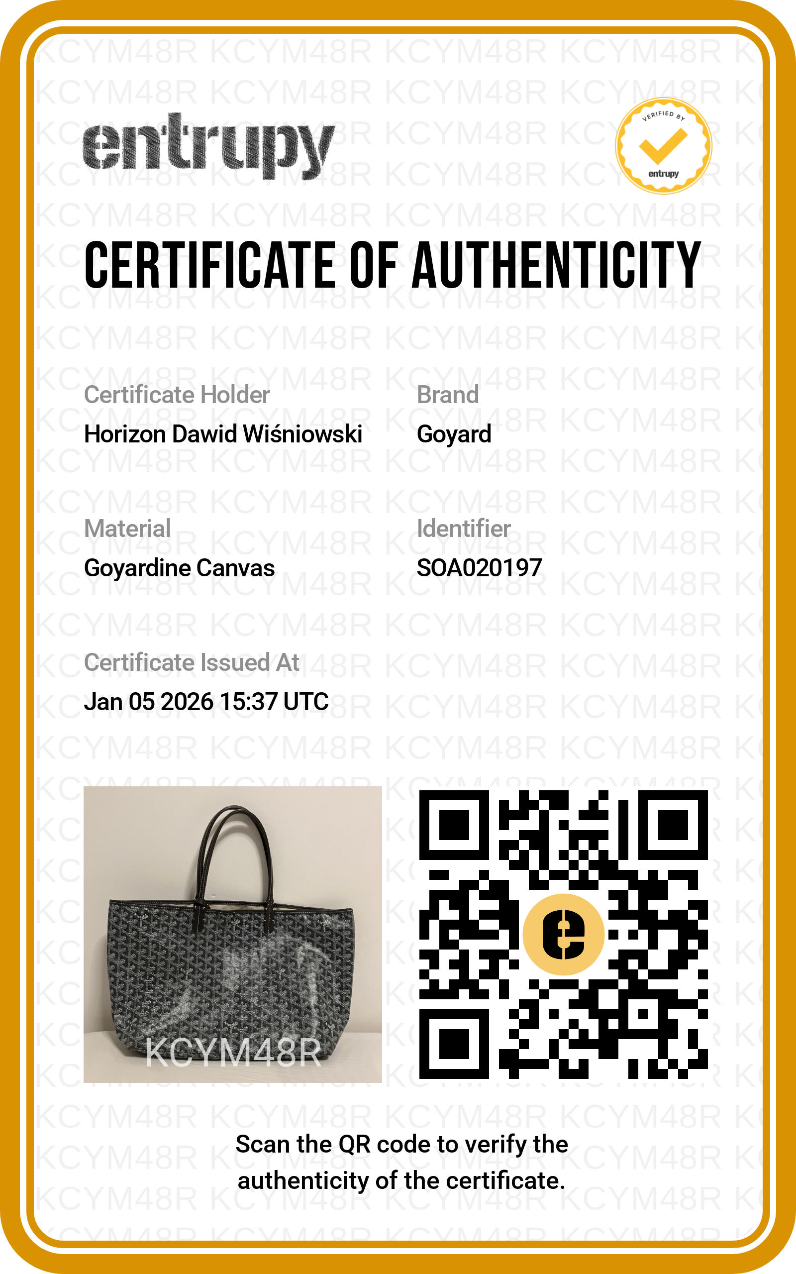 3. Po otrzymaniu torebki niezwłocznie przystąpujemy do weryfikacji produktu i prześlemy na Twój adres e-mail certyfikat autentyczności.
