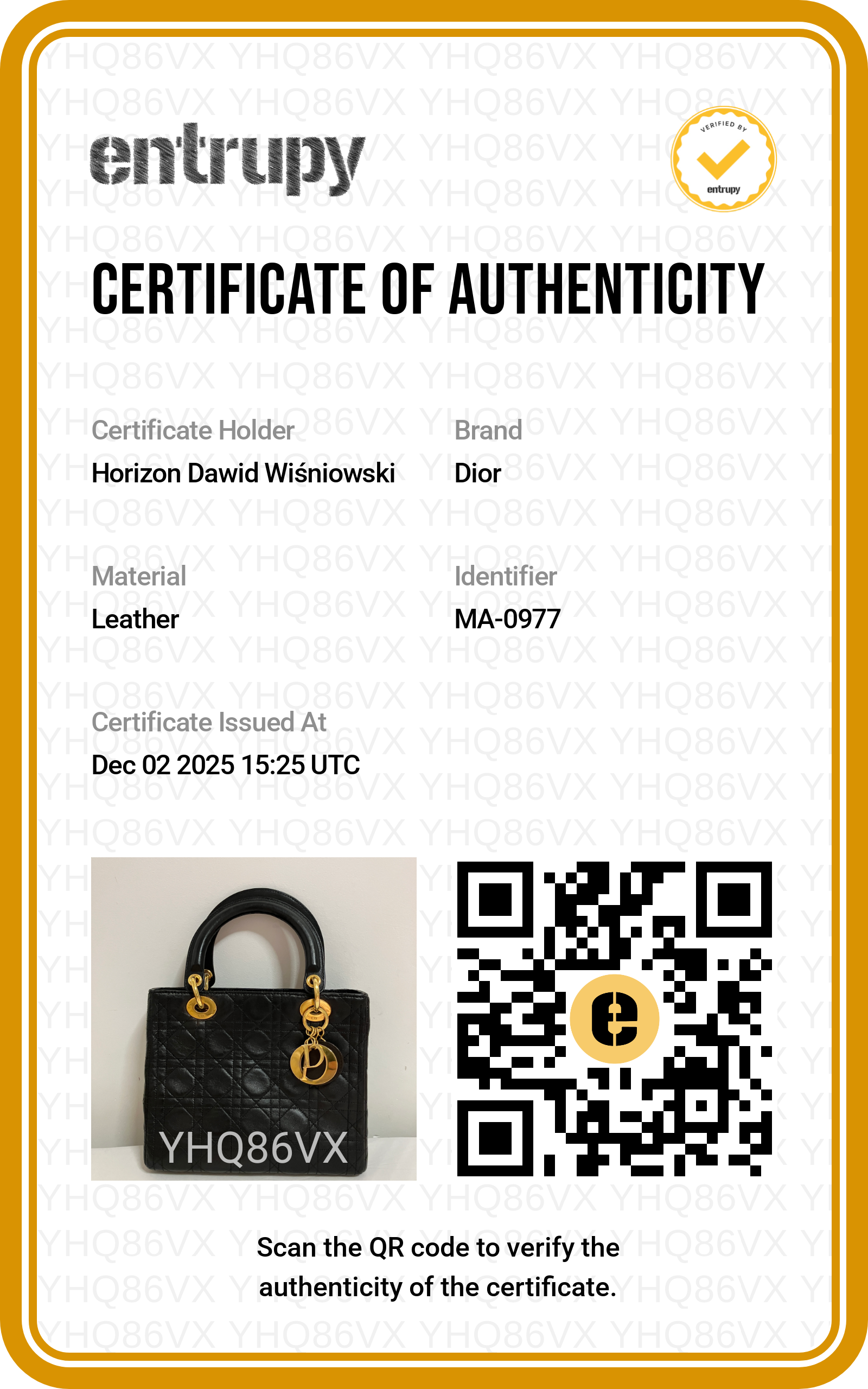 Dodatkowe informacje: Certyfikat Entrupy w zestawie
