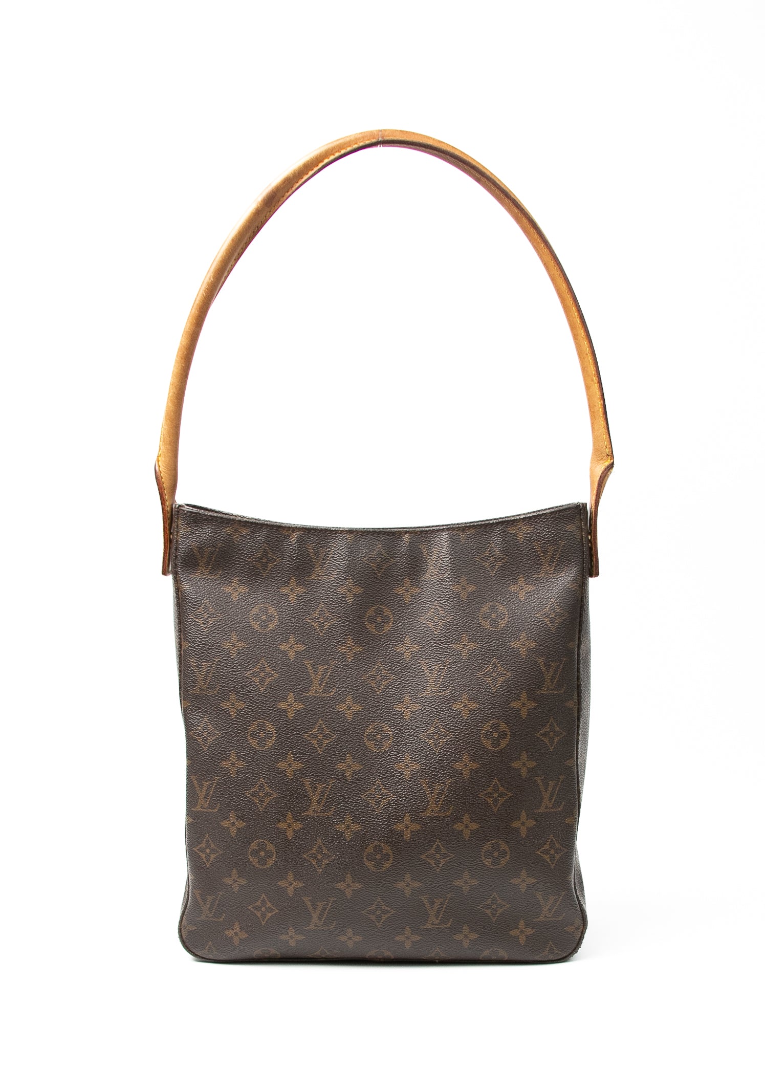 Torebka Louis Vuitton w klasycznym wzorze Monogram, o smukłej, pionowej formie i minimalistycznym charakterze. Model na jedno ramię, bardzo „czysty” wizualnie — bez przeszyć na froncie, skupiony na proporcji i kultowym płótnie LV.