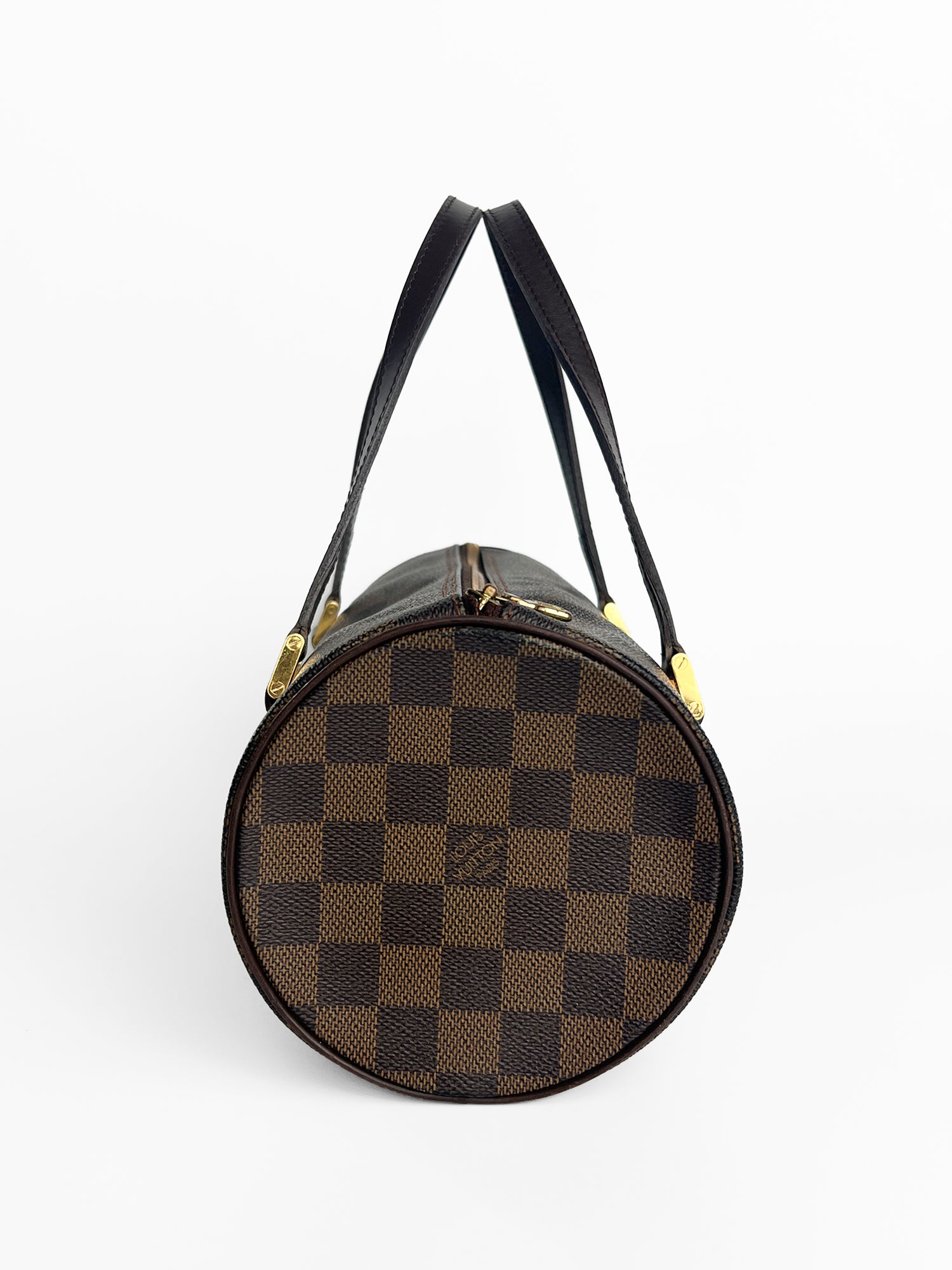 Kultowa torebka Louis Vuitton Papillon wykonana z wytrzymałego płótna Damien Ebene pokrytego charakterystycznym wzorem szachownicy.